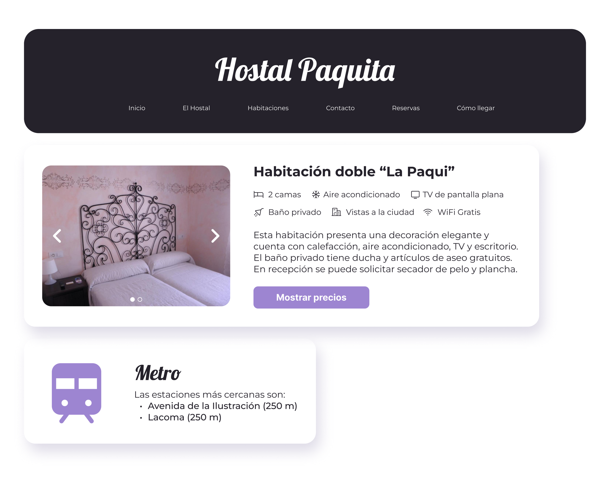 Utilizando un enfoque basado en las leyes heurísticas de Nielsen, se rediseñó la web de Hostal Paquita para ofrecer una experiencia