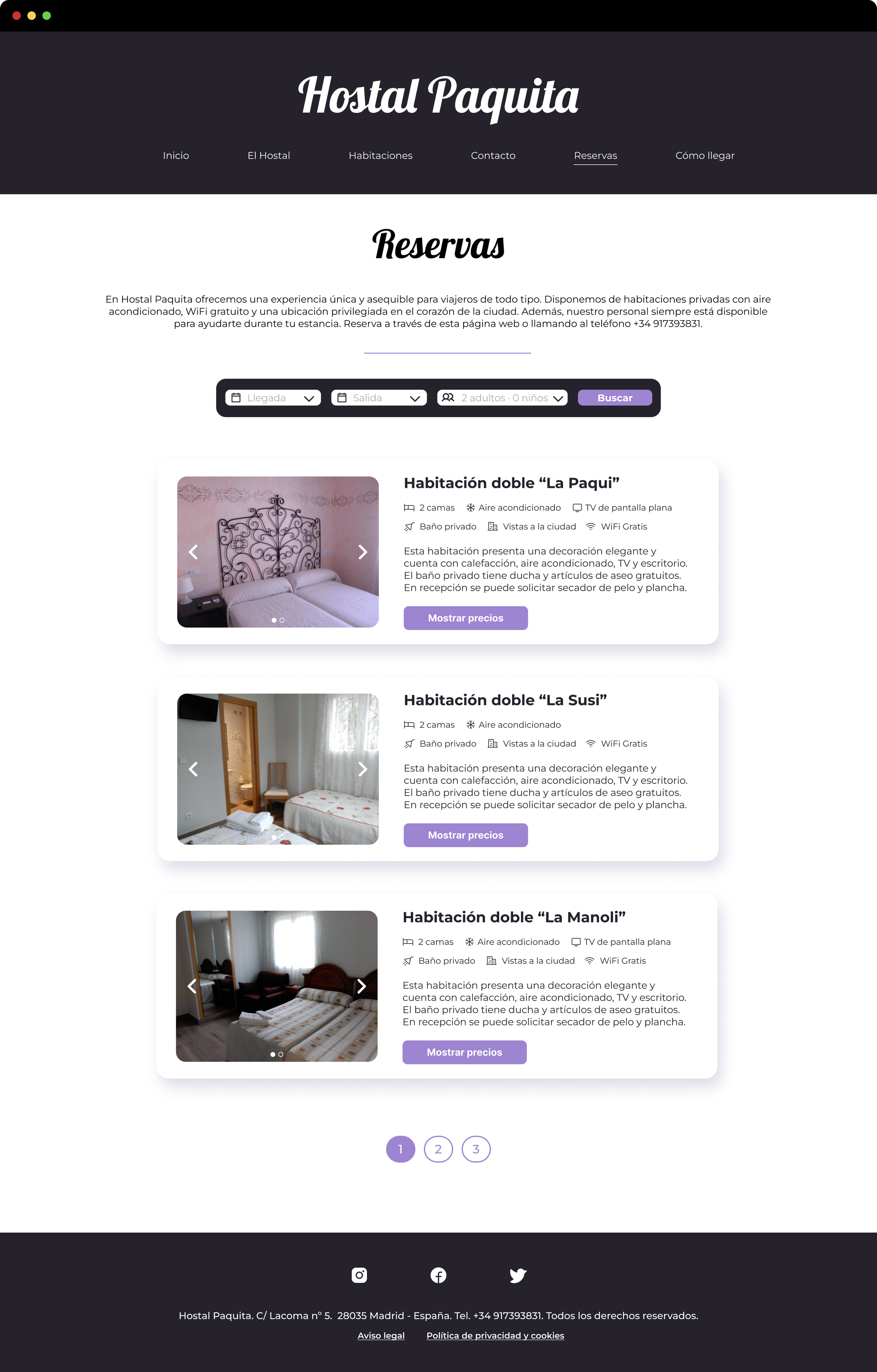Consideramos necesaria mejorar la coherencia visual, la legibilidad, la organización del contenido y las opciones de reserva de la web de este hostal.